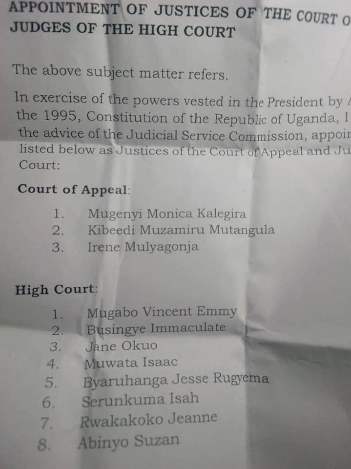 Justice Mulyagonja has been appointed alongside two others – lawyer Muzamiru Kibeedi and High Court Judge Monica Mugyenyi Kalyegira to beef up the Court of Appeal bench