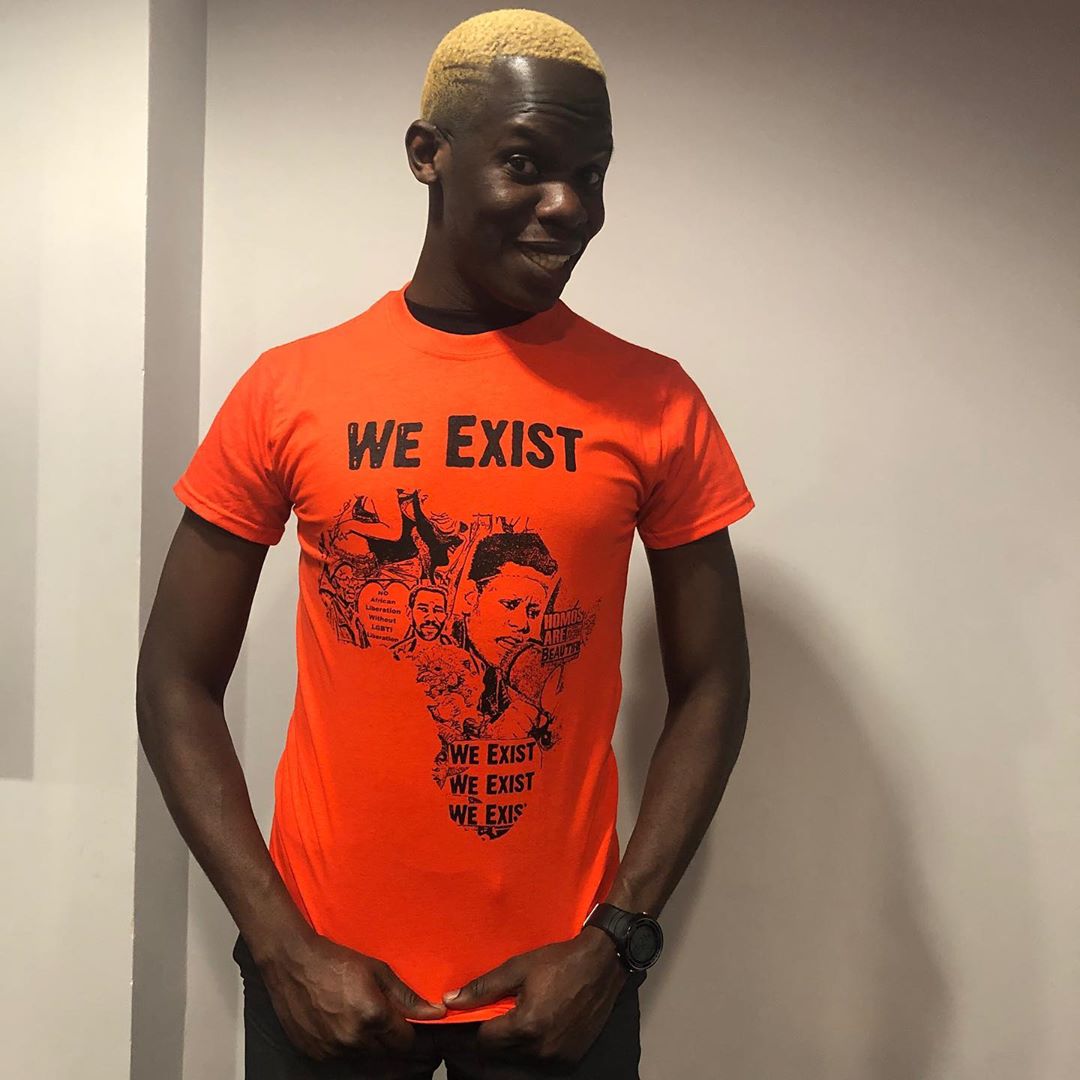 In photos making rounds on social media, Afande Kelekele is seen wearing a t.shirt for the organization called Out & Proud African LBTI under the hashtag #Weexist at their end of year party . However, the faded comedian risks jail because in Uganda, once caught bumshafting a fellow man or doing coitus interruptus with a fellow woman earns one a life imprisonment.