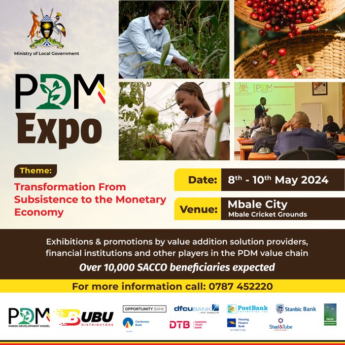 The event which is culminating from the 2 years anniversary of the Parish Development Model ever since it was launched by President Museveni in Kibuku district in 2022 is set to attract PDM beneficiaries, SACCO entrepreneurs, Financial Institutions, government MDAs – among other entities involved in the agriculture value chain will take place on 8th to 10th May 2024 at the Mbale Cricket grounds in Mbale City.