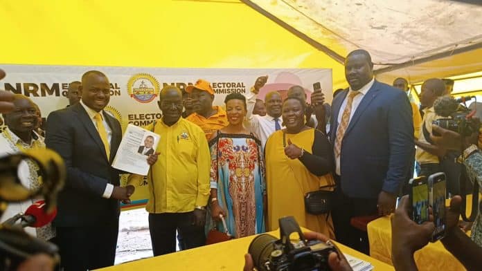 Minister Haruna Kasolo on Thursday proved that he is still leading the race for the NRM regional Vice Chairman for Buganda when he turned up at the Party’s EC head offices in Nakasero accompanied by a large crowd of supporters who included two former Vice Presidents of Uganda.